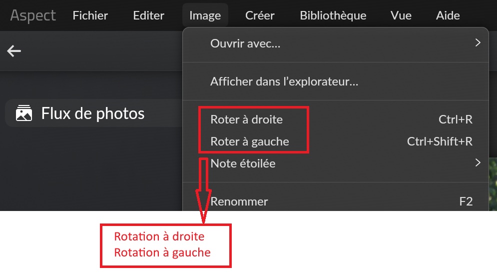 → “Rotation 90° sens (anti-)horaire” :